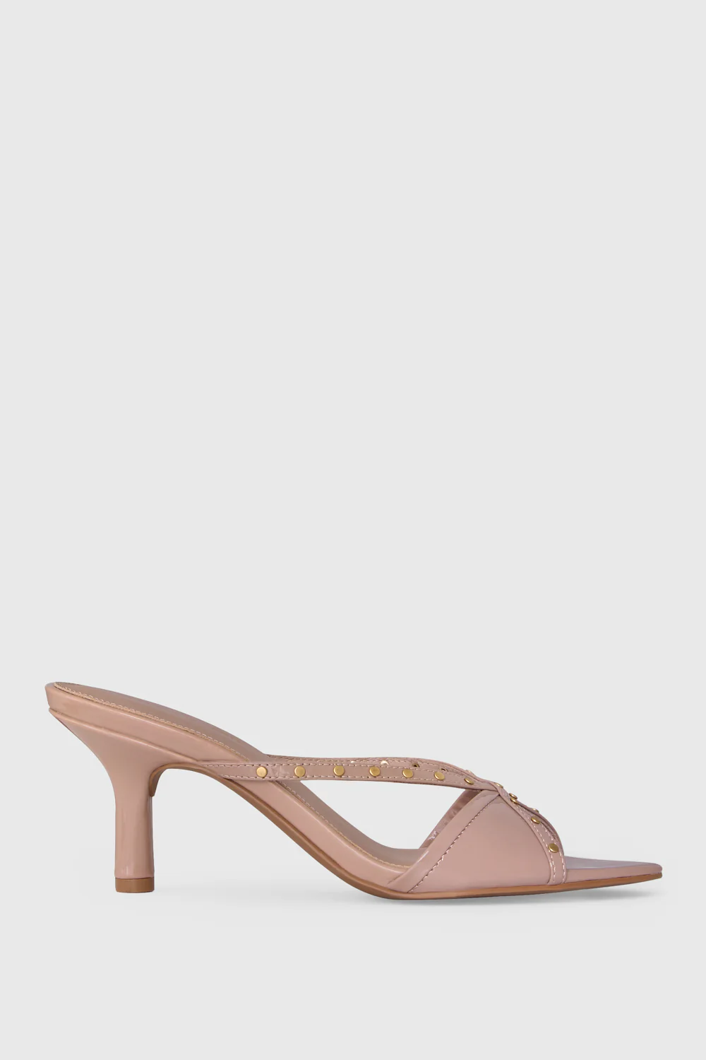 Get into the Studded Slide for effortless chic. With pin-stud details and a sculpted mid-heel, this slide combines modern style with everyday comfort. Finished with a padded insole and sleek rubber sole.