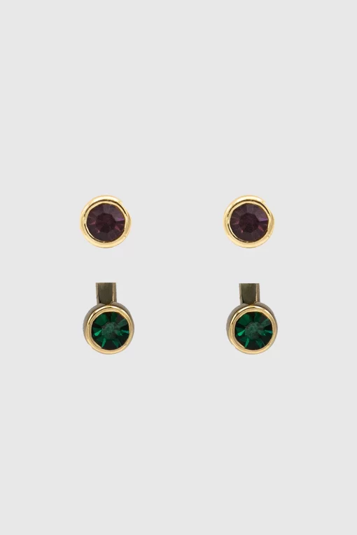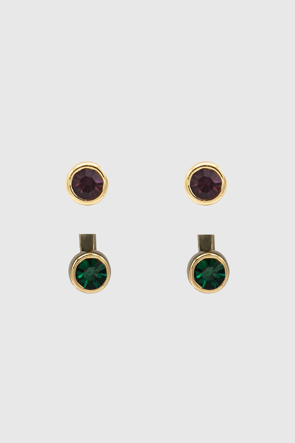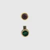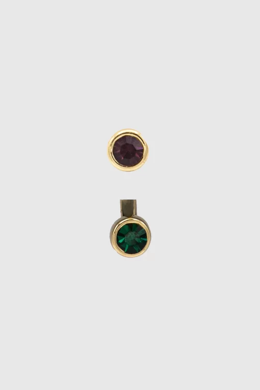 Double the fun. Set with an amethyst and emerald crystal, this pair of gold-plated earring jackets provide both versatility and style.